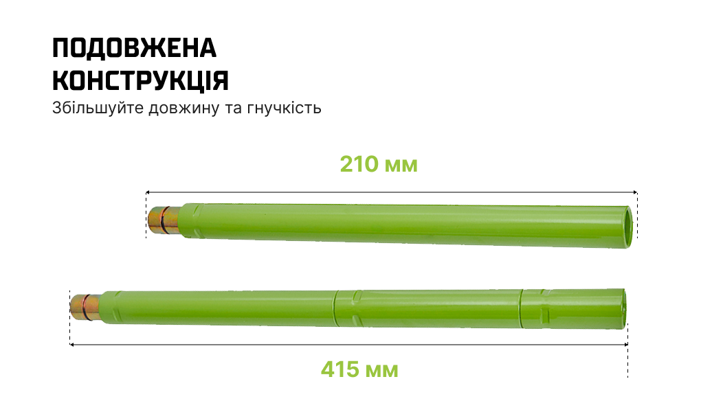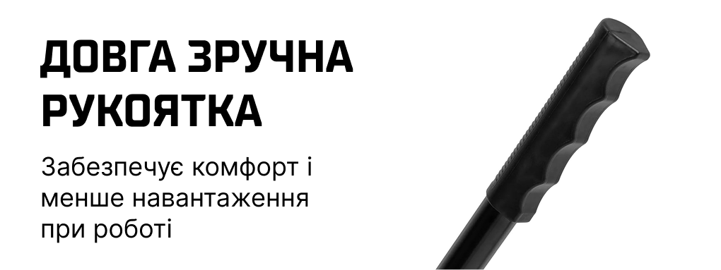 Довга ергономічна рукоятка зменшує навантаження на руки та підвищує контроль інструмента.