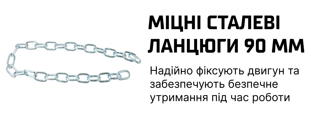 Сталеві ланцюги забезпечують надійну фіксацію двигуна під час рихтувальних та ремонтних робіт. Виготовлені з міцної сталі, вони витримують значні навантаження та гарантують стабільне утримання без ризику зриву або деформації.